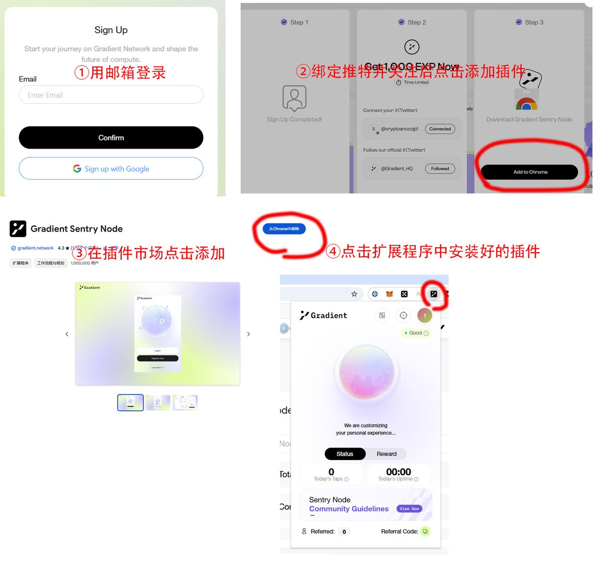 https://app.gradient.network/signup?code=UF21M2(请确认网址准确,避免钓鱼网站)。输入邮箱或者直接谷歌账号登录。